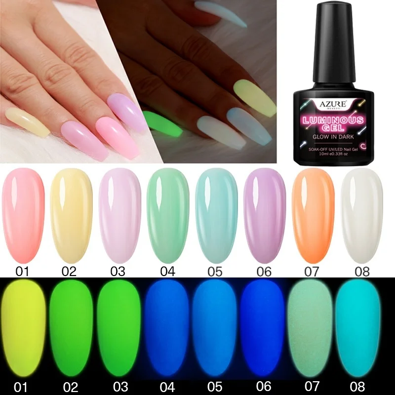 Limited Chance of Azure Beauty Luminous Nail Gel Polish Soak Off Fluorescent In The Dark Led Gel Nail Lacquer Semi Pe
